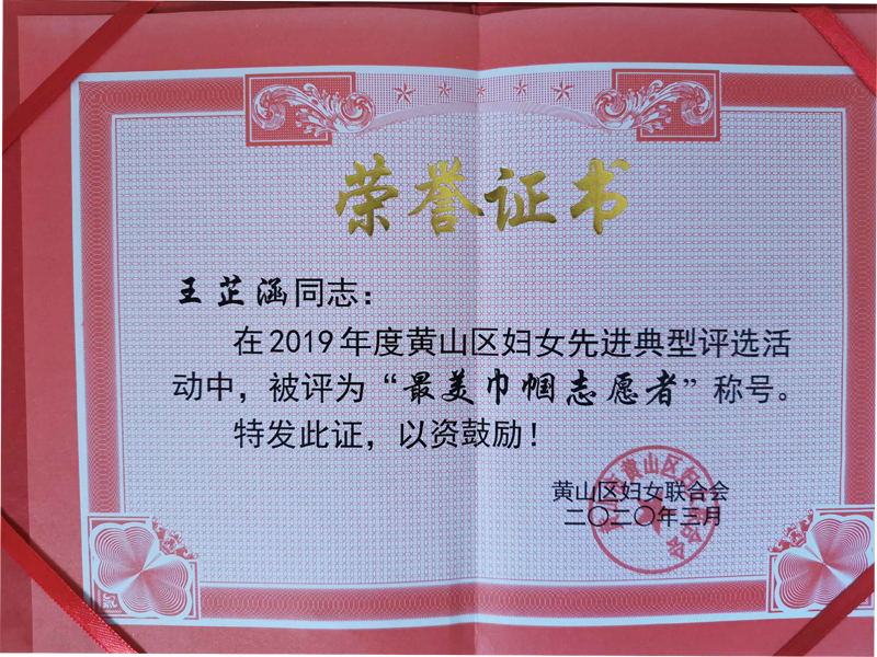 近日,我校经济与管理学院人力资源管理专业2019级学生王芷涵因在安徽省黄山市黄山区新型冠状肺炎疫情防控志愿工作中表现突出,被当地妇联评为“最美巾帼志愿者”。