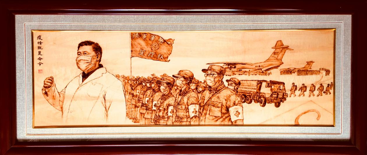 在抗击新冠肺炎疫情的战役中,举国上下涌现出无数可歌可泣的人和事,谱写了一曲曲同舟共济、众志成城、科学防疫、全民防疫的时代赞歌。为铭记抗疫历史,弘扬抗疫精神,我校人文社会科学学院兼职教授郑红伟创作了35幅“铭记历史,致敬白衣天使”系列“战疫”烙画作品。这些精美绝伦的烙画作品引起了社会广泛关注,被国内10余家省博物馆收藏。