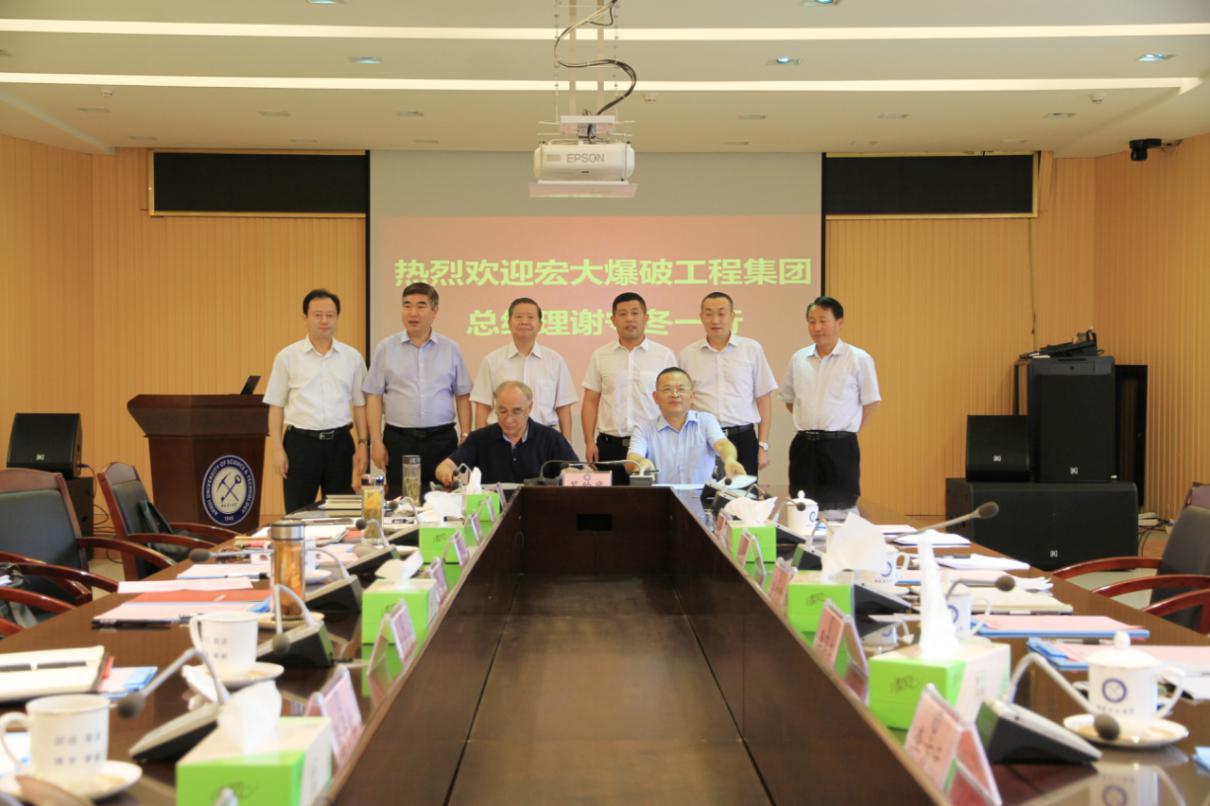 6月10日下午,校党委副书记、校长袁亮院士在舜耕苑二楼会议室亲切会见宏大爆破工程集团党委书记、总经理谢守冬校友一行。校企双方举行“宏大爆破”奖助学金捐赠及校企战略合作协议签字仪式。校党委常委、副校长郑明东主持捐赠签署仪式。宏大爆破工程集团常务副总经理、总工程师李萍丰出席签字仪式。