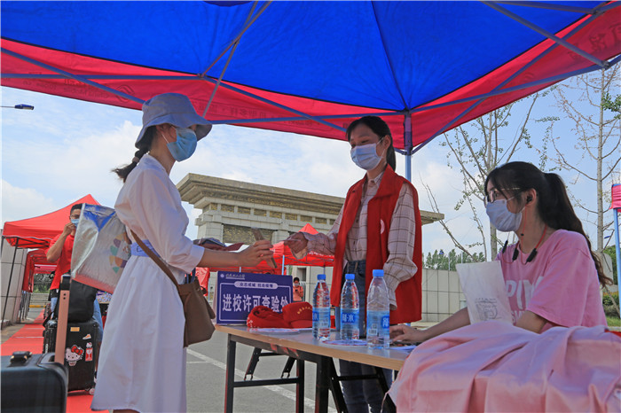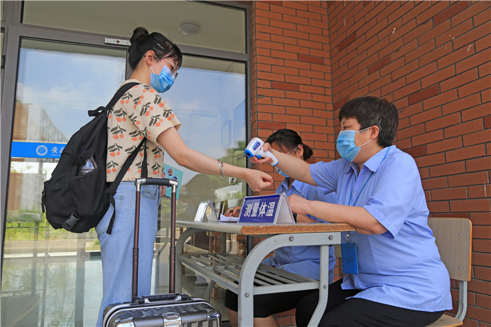 报到现场,各学院及有关职能部门工作人员和学生志愿者各司其职,通力协作,认真做好行李消杀、“安康码”“返校许可码”核验、体温检测、爱心包发放、宿舍入住等各项工作,全力保障学生安全有序返校,报道现场平稳有序。