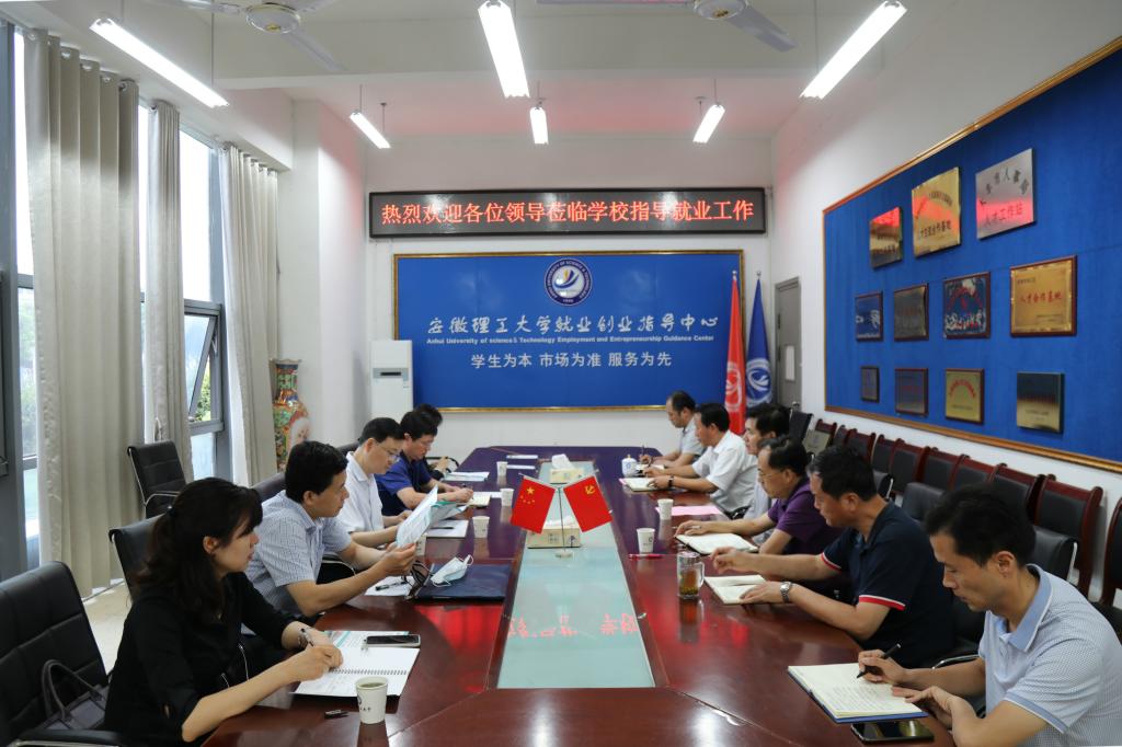6月18日上午,淮南市委组织部副部长夏万东、市人社局局长王怀义一行5人来校调研2020届毕业生就业工作。校党委副书记虞宝桃在厚德馆A201会议室会见了夏万东、王怀义一行。