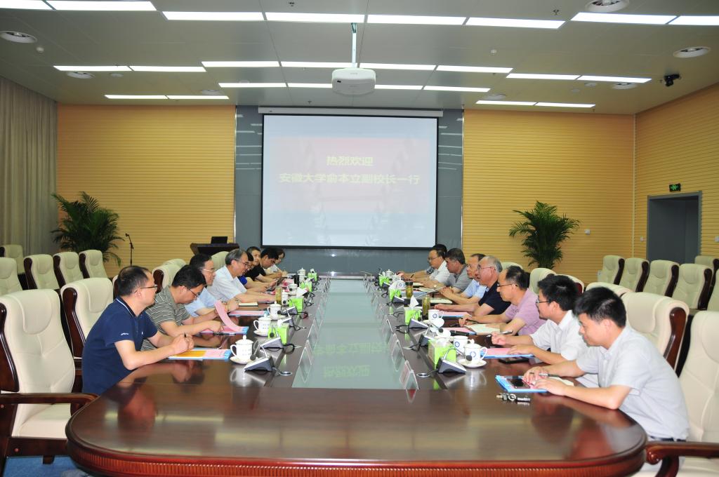 7月10日上午,安徽大学副校长、安徽大学信息材料与智能感知安徽省实验室主任俞本立一行来校调研交流,校党委书记、采动国家重点实验室(采动安徽省实验室)主任郭永存在实验室1号会议室亲切会见了客人,宾主进行了深入友好的交流座谈。校党委常委、副校长郑明东出席座谈会。