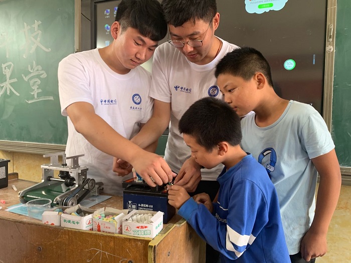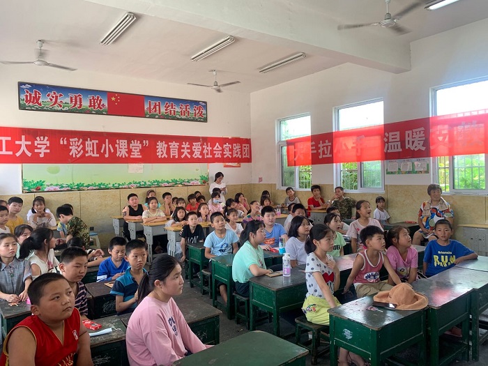 青少年阶段是人生的“拔节孕穗期”,最需要精心引导和栽培。经过前期的精心准备,“彩虹小课堂”在当地徐老小学拉开帷幕,机械学院、数大学院、力物学院、外国语学院和材料学院的志愿者为村里的60余名小朋友们带去了各具特色的课程,他们与孩子们很快“自然熟”,寓教于乐,在互动中启发小朋友思考,激发他们的学习兴趣。