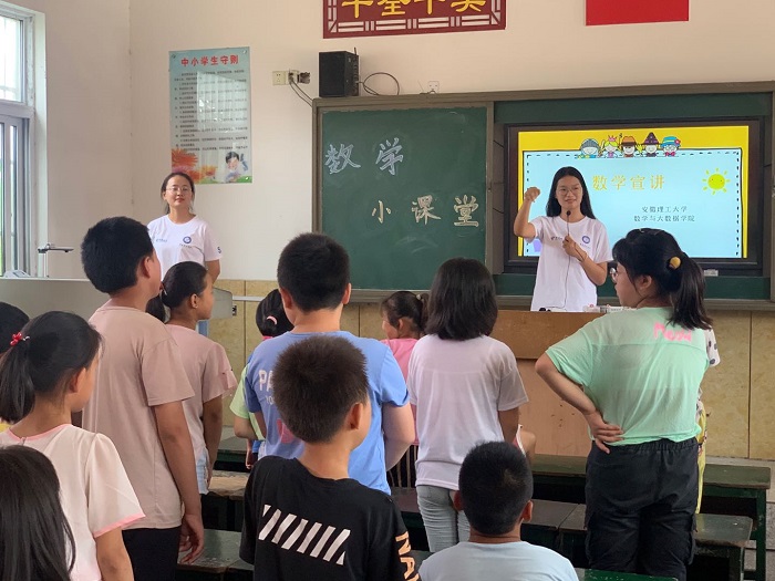 由机械学院引领的科技创新小课堂,带来了发动机和传送带模型,让孩子们领略到现代化工业的魅力;趣味数学小课堂上,力物学院和数大学院的志愿者们用数字构建起童话世界,让孩子们的梦想在信息世界中徜徉;彩虹英语小课堂上,外国语学院的志愿者用彩虹的颜色勾勒出英语天地,让孩子们体会到英语课堂的五彩缤纷!