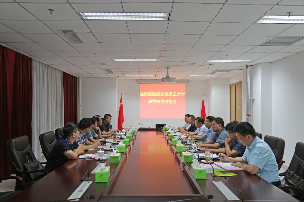 9月10日下午,临泉县人民政府副县长葛金海一行5人来校对接消费扶贫工作。校党委副书记虞宝桃,校党委常委、副校长吴照明在舜耕楼1121会议室亲切会见了客人,进行了座谈交流。