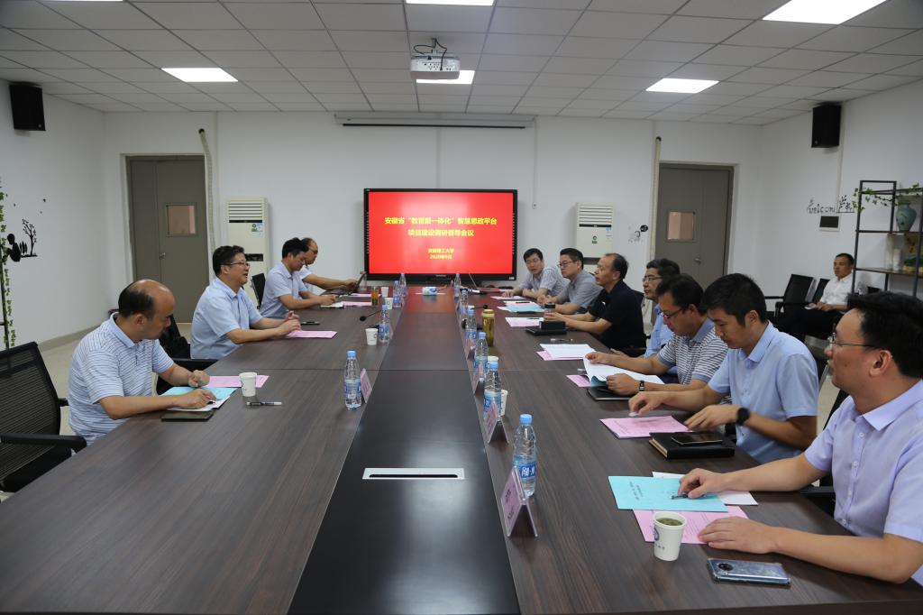 9月15日上午,安徽省委教育工委副书记王佩刚来我校就“教管服一体化”智慧思政平台建设进行专题调研。校党委书记郭永存,校党委常委、副校长董雨参加调研会。