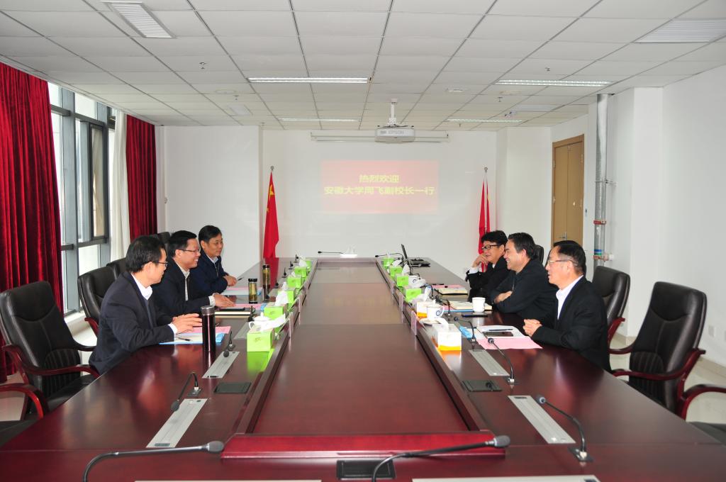 10月29日上午,安徽大学党委常委、副校长周飞率后勤管理处、校工会负责人来校调研交流工作。校党委副书记虞宝桃会见了周飞一行,校党委常委、副校长吴照明出席座谈会。