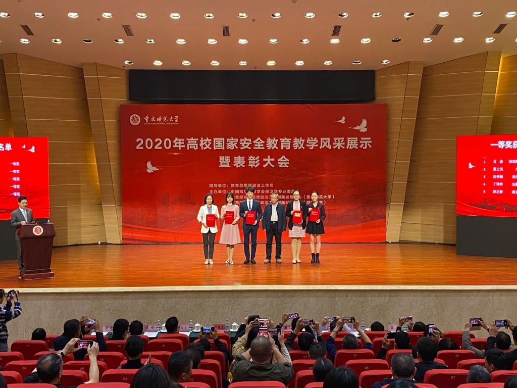 11月16日,由教育部思想政治工作司指导,中国高等教育学会保卫学专业委员会、教育部高校思想政治工作创新发展中心主办的2020年全国高校国家安全教育教学风采展示决赛在重庆师范大学圆满结束。经过激烈角逐,我校电气与信息工程学院教师丁玲玲脱颖而出,获得一等奖的佳绩。