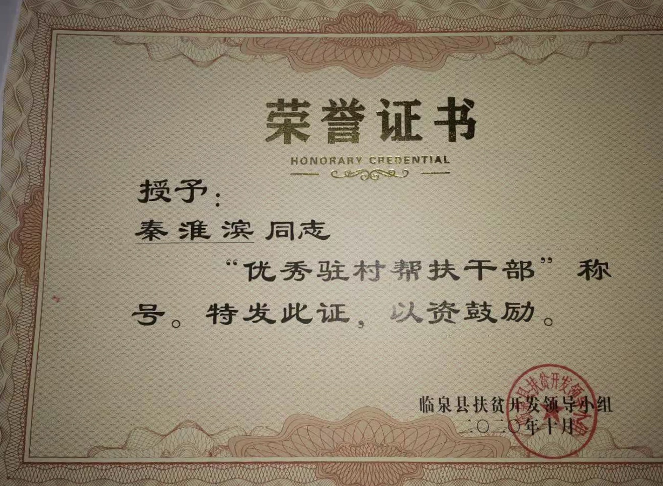 近日,临泉县扶贫开发领导小组下发《关于对2019年度脱贫攻坚先进集体和先进个人进行表彰的通报》,我校派驻临泉县滑集镇南杨小庄村和王香铺村4名扶贫干部全部获表彰。