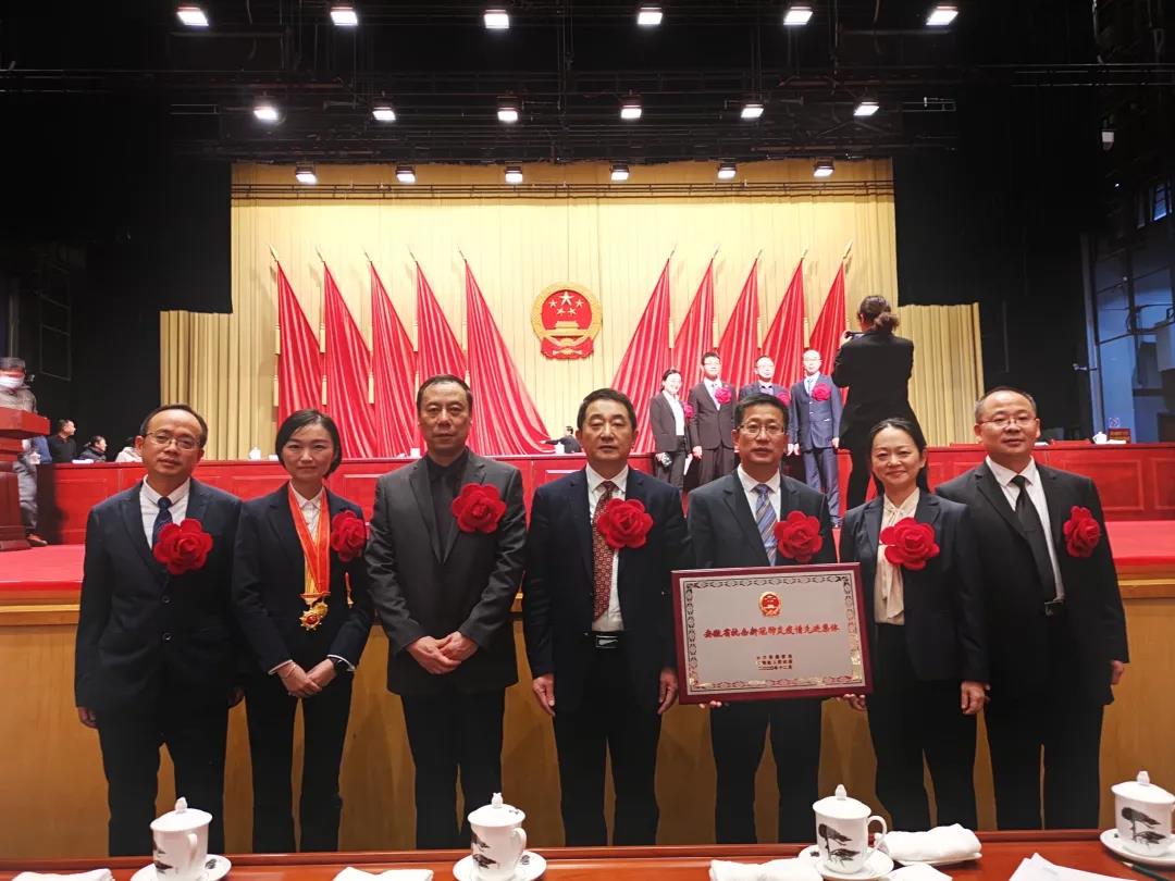 院党委书记、院长杨立新作为先进集体代表上台领奖。院日间医疗管理中心副主任兼护士长夏晓丹作为全国抗击新冠肺炎疫情先进个人代表参加表彰大会,并于主席台就座。院党委委员、市传染病医院院长刘新矿,市院感质控中心副主任、院综合检查办公室主任瞿秋明,骨科副主任、副主任医师陶钧,感染性疾病科副主任医师朱永兵,感染性疾病科护士长米伟荣获“安徽省抗击新冠肺炎疫情先进个人”称号。