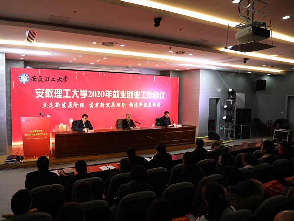 为深入学习贯彻党的十九届五中全会精神,贯彻落实习近平总书记考察安徽重要讲话指示精神和2021届全国普通高校毕业生就业创业工作网络视频会议、安徽省就业创业工作推进会暨就业工作先进表彰会精神,全面总结2020届毕业生就业创业工作,准确把握和研判当前形势,研究部署2021届毕业生就业创业工作,12月10日上午,学校在图书馆三楼报告厅隆重召开了2020年就业创业工作会议。校党委书记郭永存出席会议并讲话,校党委副书记、常务副校长虞宝桃主持会议,校党委常委、副校长董雨出席会议。