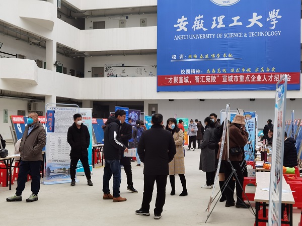 12月9日,宣城人社局组团25家单位来校开展招聘,“才聚张江 梦启科创”——安徽理工大学2021届毕业生网络招聘会(生物医药专场)也同时启动,吸引了近千名毕业生踊跃参与。活动也把学校周三招聘市场推向了高潮。