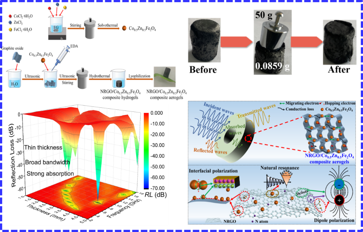 氮掺杂还原氧化石墨烯/钴锌铁氧体复合气凝胶的合成工艺及性能机理图