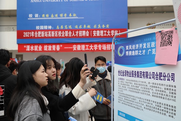 优质企业促推就业质量。为助力毕业生更高质量就业,学校进一步开源拓岗,不断拓展毕业生就业空间,采取线下线上招聘并举,线下组团招聘会、专场宣讲会、空中宣讲会、空中双选会及安徽理工大学春季大型就业洽谈会等多种招聘活动都在紧张有序组织中。截止目前,线上举办双选会5场,线下校园宣讲会已经申请预约200余场,其中邀请世界五百强企业27家,中国五百强企业45家,国有、事业单位34家,提供的岗位达到8万余个,招聘的岗位和毕业生比达到了13:1,就业工作实现良好开端。