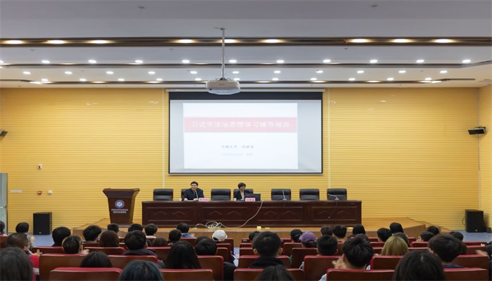 虞宝桃对报告会进行总结,他指出要深刻认识和把握党领导人民治国理政规律、社会主义法治建设规律、人类法治文明发展规律,坚定中国特色社会主义的民主自信、法治自信、人权自信和政党自信。提出依法治校是依法治教的重要组成部分,希望同学们深刻理解习近平法治思想中“以人民为中心”的内涵,通过学习中国法治发展史,把握历史逻辑和法治规律,以史明理,学史力行,学以致用,全面发展。