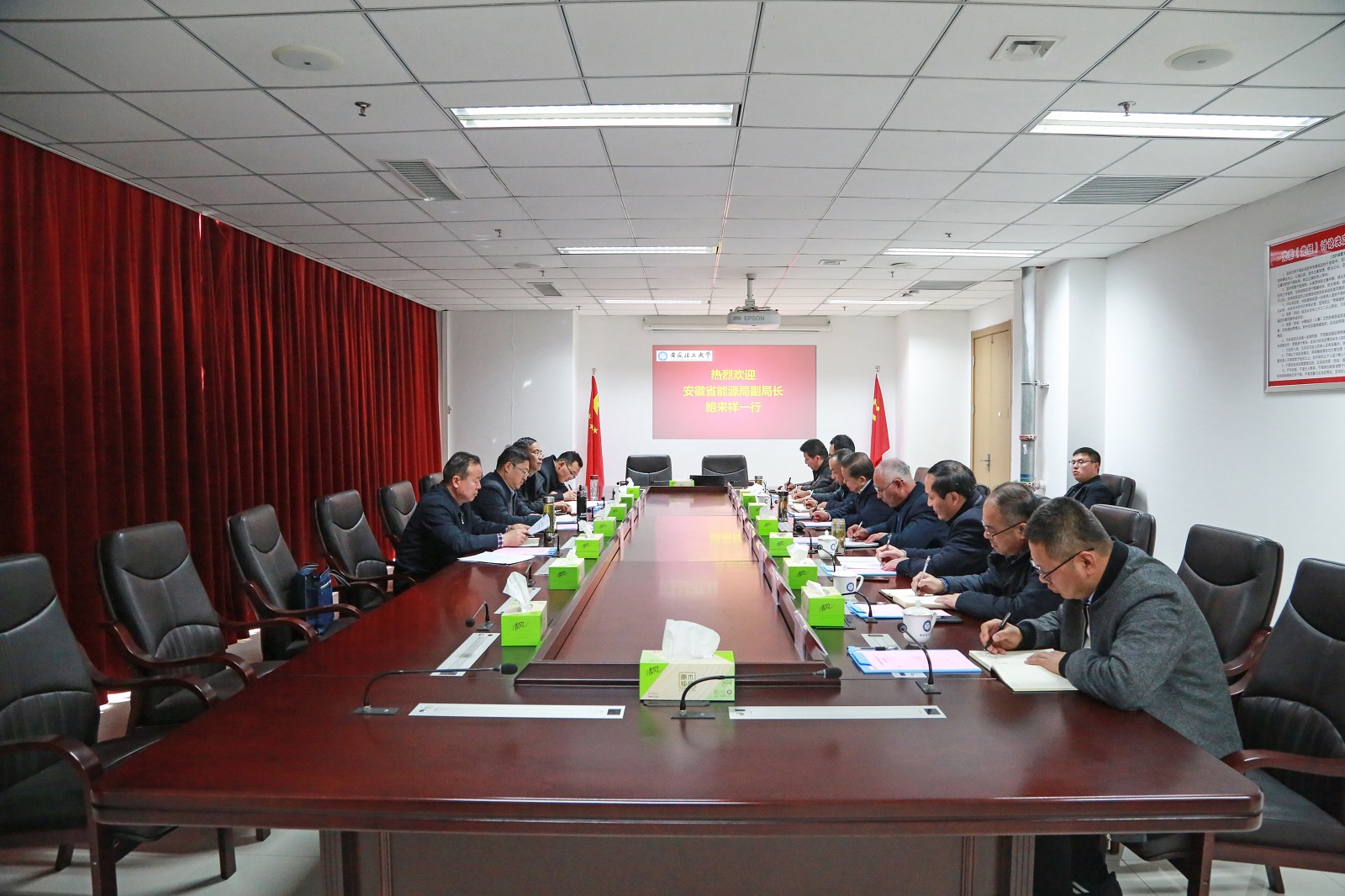 3月23日下午,安徽省能源局党组成员、副局长鲍来祥,煤监处处长方恒林,煤炭处处长张永红,煤监处一级主任科员张顺一行来校调研座谈。校党委副书记、校长袁亮院士,校党委常委、副校长郑明东出席会议。