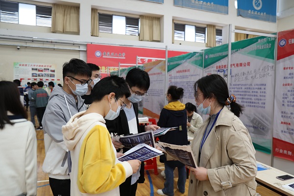 为更好地为用人单位集中选聘人才提供优质服务,积极为广大毕业生搭建广阔的就业“双选”平台,学校按照防疫防控要求,周密筹备,精心举办本次线下洽谈会。洽谈会邀请函在发布后得到全国众多企业的关注、报名。学校在遴选参会企业中坚持“中”字头、“国”字头、“皖”字头优先,同时兼顾企业规模、专业匹配、历年录用学校毕业生等条件,最终确定的308家企业中世界500强22家、中国500强37家、中国民营企业500强54家,行业涉及建筑、机械、制造、汽车、材料、电力电子、矿业、民爆化工、金融、IT、医疗卫生、测绘、环保、生物制药、教育科研等多个领域,所需求的专业涵盖我校全部专业,温州、嘉兴、丽水、南京、安庆、铜陵、芜湖、合肥庐江县等8家地方人社部门组团108家当地企业进校招聘。据不完全统计,参加此次供需见面洽谈会的毕业生达5862人次,与用人单位达成初步意向3996余人次。