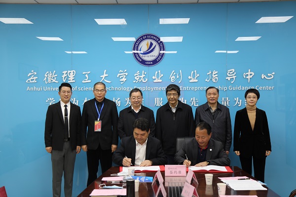 就业创业指导中心主任田中良代表学校与嘉兴人社部门负责人共同签订了校、地合作协议,袁江林为“嘉兴市秀洲区人力资源和社会保障局安徽理工大学生就业创业实践”基地授牌。