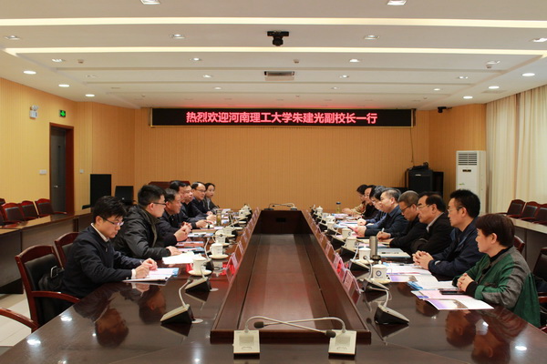 3月31日下午,河南理工大学副校长朱建光一行来校调研考察。校党委常委、副校长宫能平热情接待了来宾。双方在舜耕苑二楼会议室进行了交流座谈。
