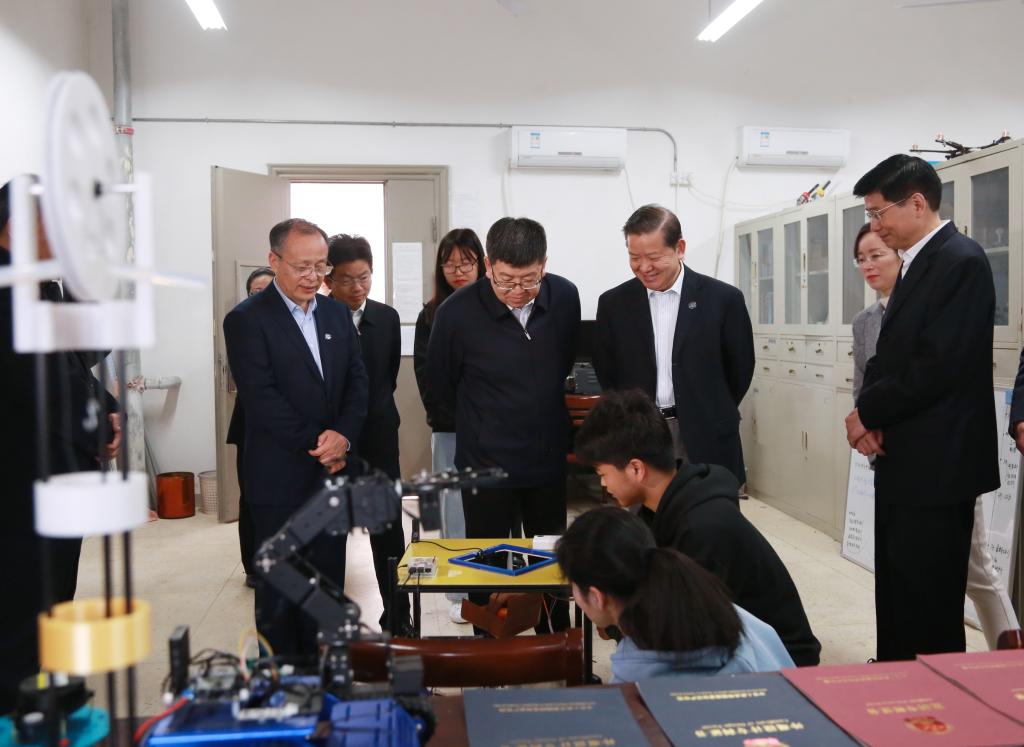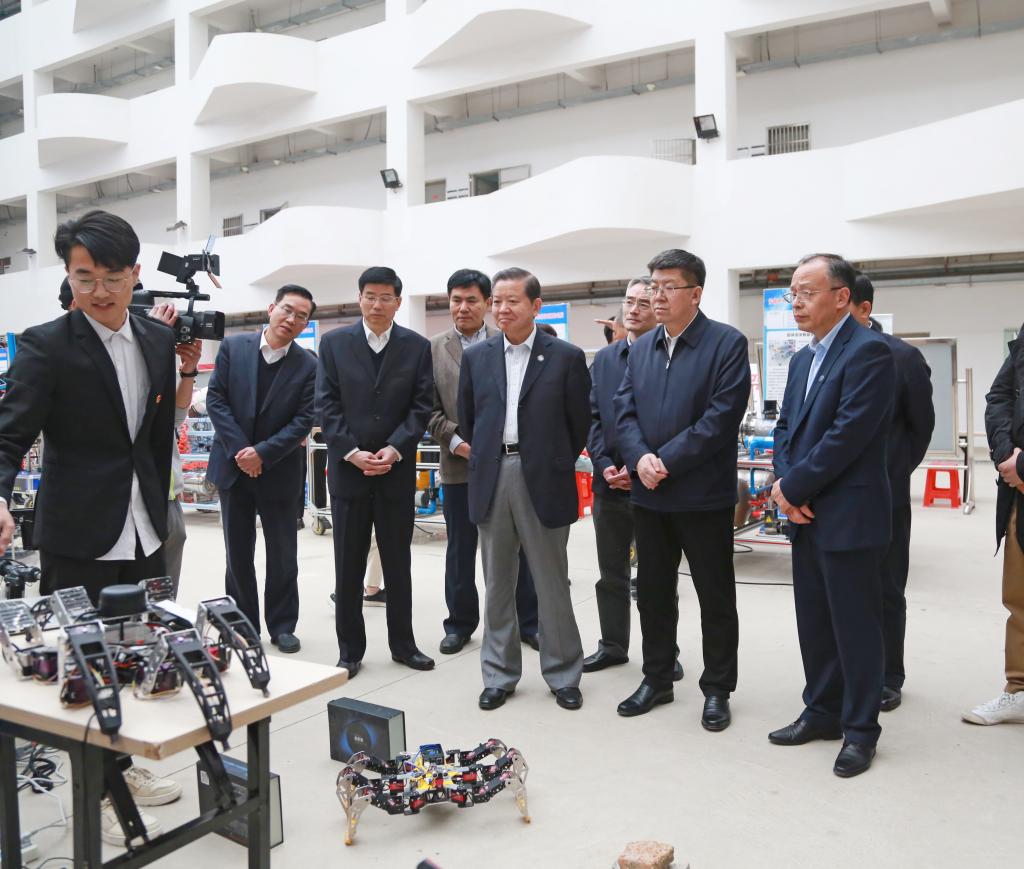 在国家创新人才培养示范基地和大学生科技创新作品展现场,任泽锋与大学生机器人协会、大学生航模与科技践行协会以及参加大学生科技创新作品展的同学们亲切交流,为大学生科技创新作品创意点赞,对学校创新创业教育成果和创新人才培养工作给予了充分肯定。