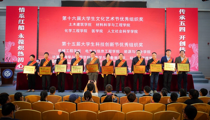 校领导为“大学生文化艺术节和科技创新节”优秀组织奖获奖单位颁奖(摄影:大学生青年传媒中心、大学生摄影协会)
