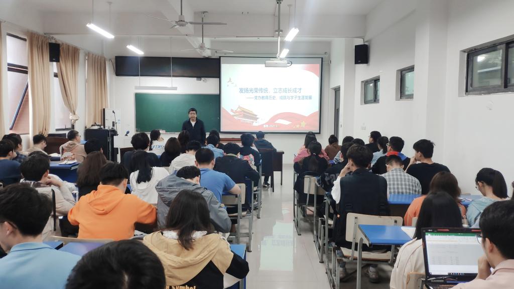 董雨从“抗日时期的发端”“建国后的发展”“改革开放后的腾飞”“举世瞩目的成就”“立志成长成才的自觉”五个历史阶段阐述了中国共产党独立探索中国特色高等教育道路的宝贵经验。他指出,在中国共产党的坚强领导下,中国的高等教育取得了举世瞩目的伟大成就,正在从高等教育大国向高等教育强国稳步迈进。希望全体学生党员以校为荣,积极进取,奋发拼搏,争取在平凡的岗位上做出不凡的业绩。