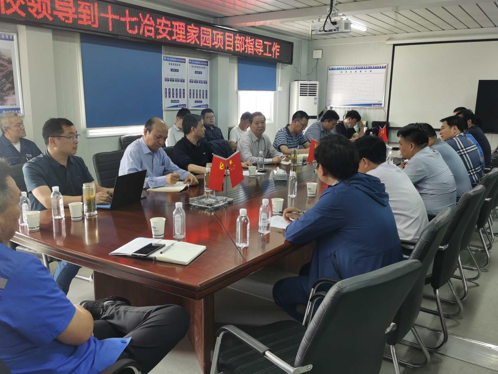 在二期EPC项目部会议室,吴照明主持召开了“安理家园”一期及二期项目12家参建单位收尾工作推进会,袁亮提出具体要求。