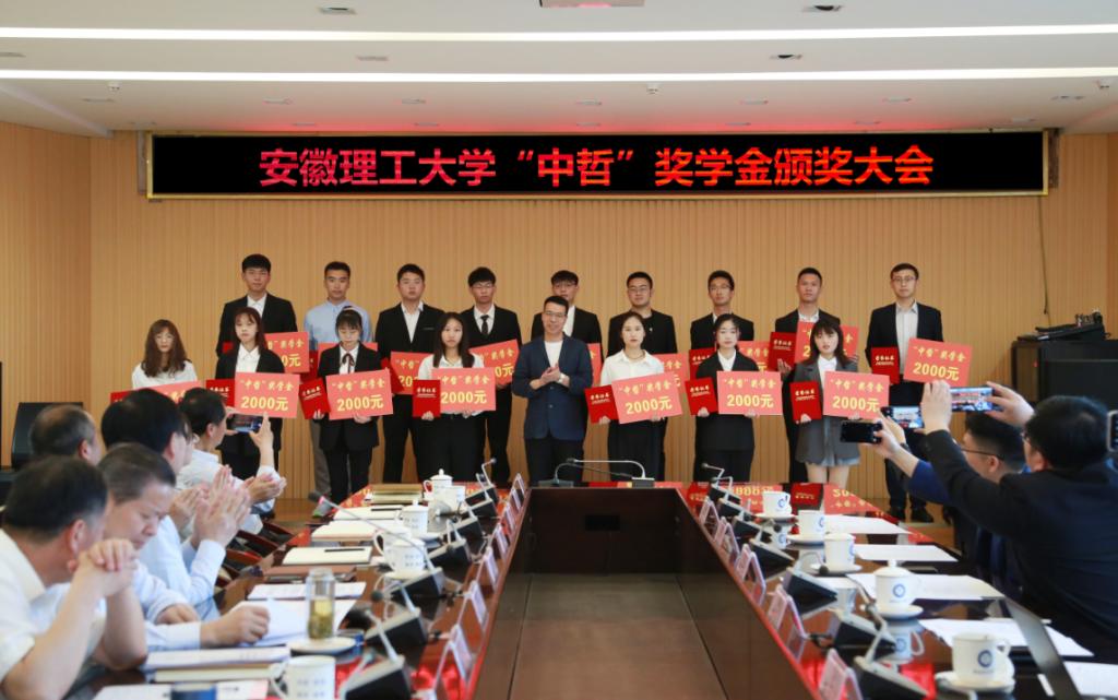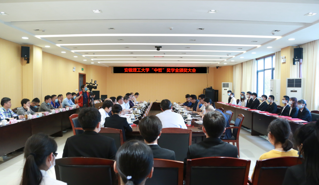 仪式上,宫能平宣读了《安徽理工大学关于表彰2019-2020学年度“中哲”奖助学金获得者的决定》。