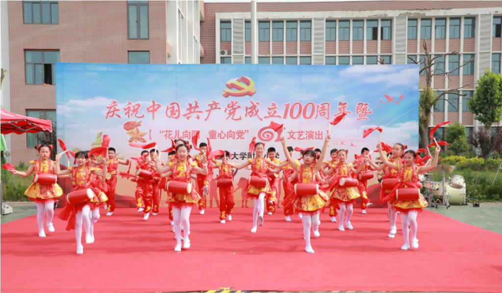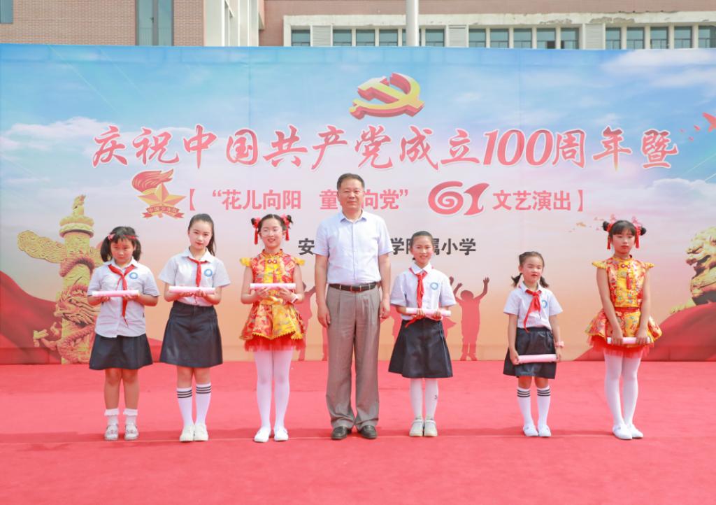 6月1日上午,附属小学庆祝中国共产党成立100周年暨“花儿向阳 童心向党”六一文艺演出活动在学校操场举行。校党委常委、副校长宫能平出席活动,并代表学校为小学生送上节日的祝福,希望小学生们以小英雄雨来、小兵张嘎等为榜样,做对国家、对人民、对社会有用的人才。校关工委、党政办、总务部、安全科学与工程学院、电气与信息工程学院、外国语学院和医学院等部门负责人与家长代表参加了庆祝活动。