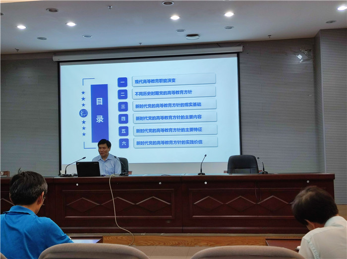 6月3日下午,校党委副书记、常务副校长虞宝桃在图书馆报告厅,为分管部门和联系学院的党员师生作了题为《关于新时代党的高等教育方针的学习思考》的党史学习教育专题辅导报告。