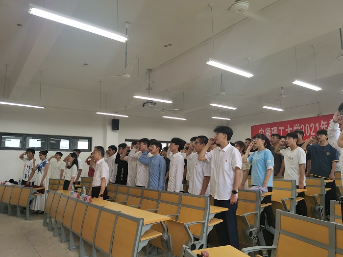 6月26日下午,学校2021年新发展团员入团仪式在明理南212举行,2021年各学院新发展团员共100人在鲜红的团旗下庄严宣誓,正式加入中国共产主义青年团。校关工委常务副主任、校原党委副书记王洪出席并为新团员授课,仪式由校团委书记程秀霞主持。