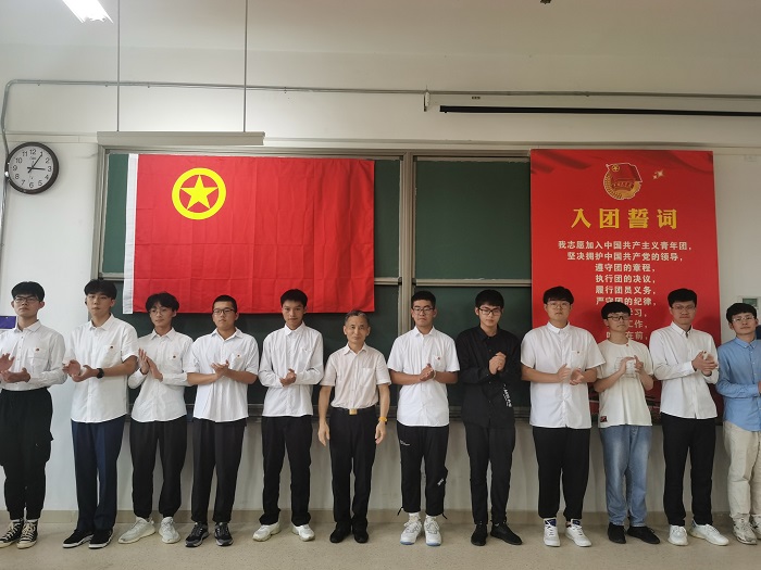 入团仪式上,庄重的国歌拉开仪式序幕。王洪为新发展团员代表佩戴团徽并现场讲授了一堂生动精彩的团课。他结合共青团的光辉历史,向大家说明团员的基本义务与团员的先进性,以黄继光、雷锋等团员英雄模范为代表讲述了团员青年率先垂范、紧跟党走的感人事迹。随后他从党的百年党史、我校校史切入,鞭策新团员要做好党的助手和后备军,不断提升自我修养,做德智体美劳全面发展的社会主义建设者和接班人。在场团员纷纷表示备受鼓舞,将自觉将个人成长融入民族发展的历史洪流中,在与“两个一百年”高度契合的人生轨迹中书写青春华章。