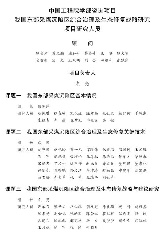 本书是集体智慧的结晶,研究与书稿编撰过程中得到了中国工程院、安徽理工大学、中国矿业大学(北京)、自然资源部国土整治中心、淮南矿业(集团)有限责任公司等单位领导和专家的大力支持与协助,在此一并表示感谢!