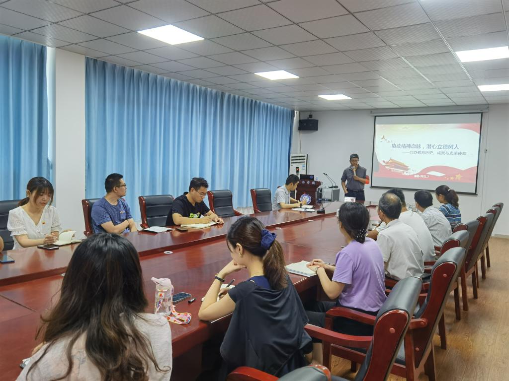 董雨以《赓续精神血脉,潜心立德树人》为主题,讲述了党办教育的历史、成就与光荣使命。他从党办教育的发端讲起,详细梳理了党办教育逐步发展、腾飞和壮大的发展历程,总结了在此过程中凝聚起的精神内涵以及对当前教育的指导意义。他与老师们分享了自己对“立德树人”的理解和体会,强调广大教育工作者要肩负起“为党育人、为国育才”的历史使命,学高身正,做学生健康成长的指导者和引路人,围绕关照、服务学生,将知识传授与能力培养相结合,为国家培养更多高素质人才。他号召老师们要将党史学习的成果转化为努力工作的不竭动力,不断弘扬正能量,构建大格局,积极工作,为学校“双一流”创建做出自己的贡献。党课选题精准,史料翔实,内容丰富,逻辑清晰,讲解生动,使老师们增强了自信和奋斗的决心,明确了努力的方向。