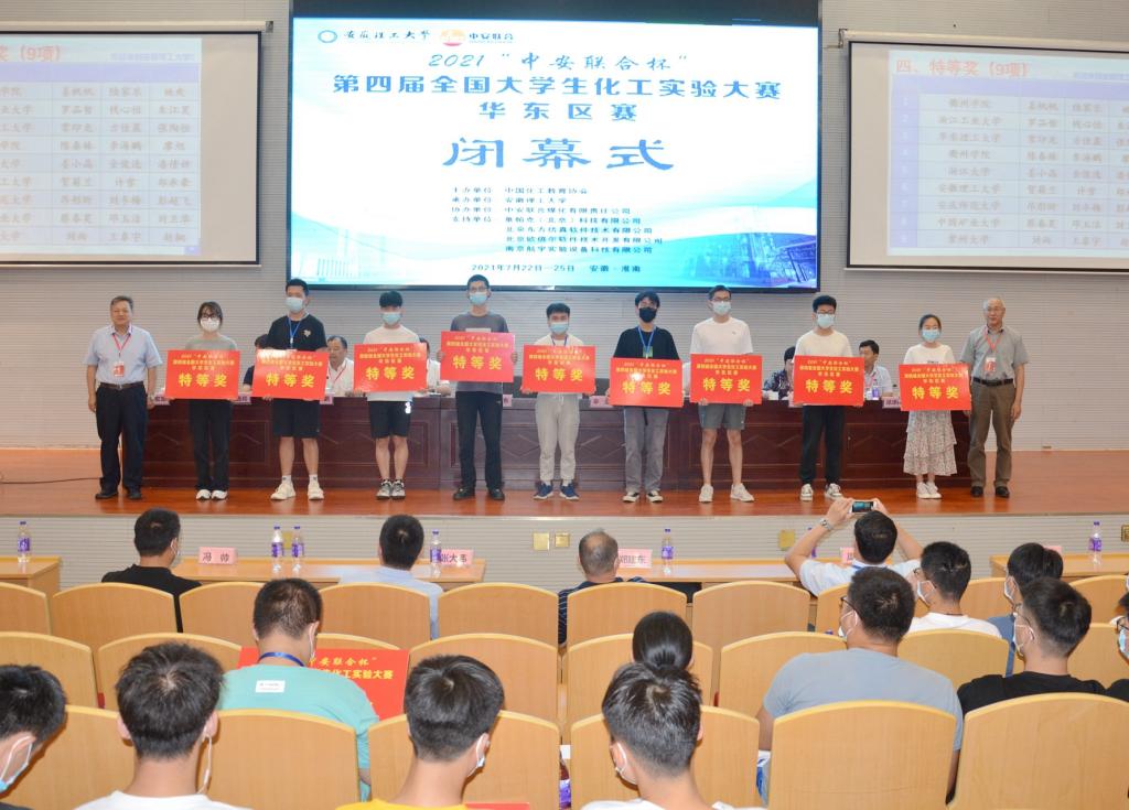 7月23日至25日,由中国化工教育协会主办、安徽理工大学承办,中安联合煤化有限公司协办的全国大学生化工实验大赛华东区赛在我校顺利举行,来自华东地区的41所兄弟高校、100支代表队、400余名师生参赛,围绕理论笔试、实验操作和仿真实验内容展开角逐。最终,衢州学院等9支代表队获得特等奖,南昌大学等17支代表队获得一等奖,盐城工学院等25支代表队获得二等奖,浙江工业大学大学等39支代表队获得仿真单项奖,华东理工大学等3所高校获得优秀组织奖。我校1支队伍获得特等奖并晋级国赛,1支队伍获得一等奖,并获“优秀组织奖”称号。