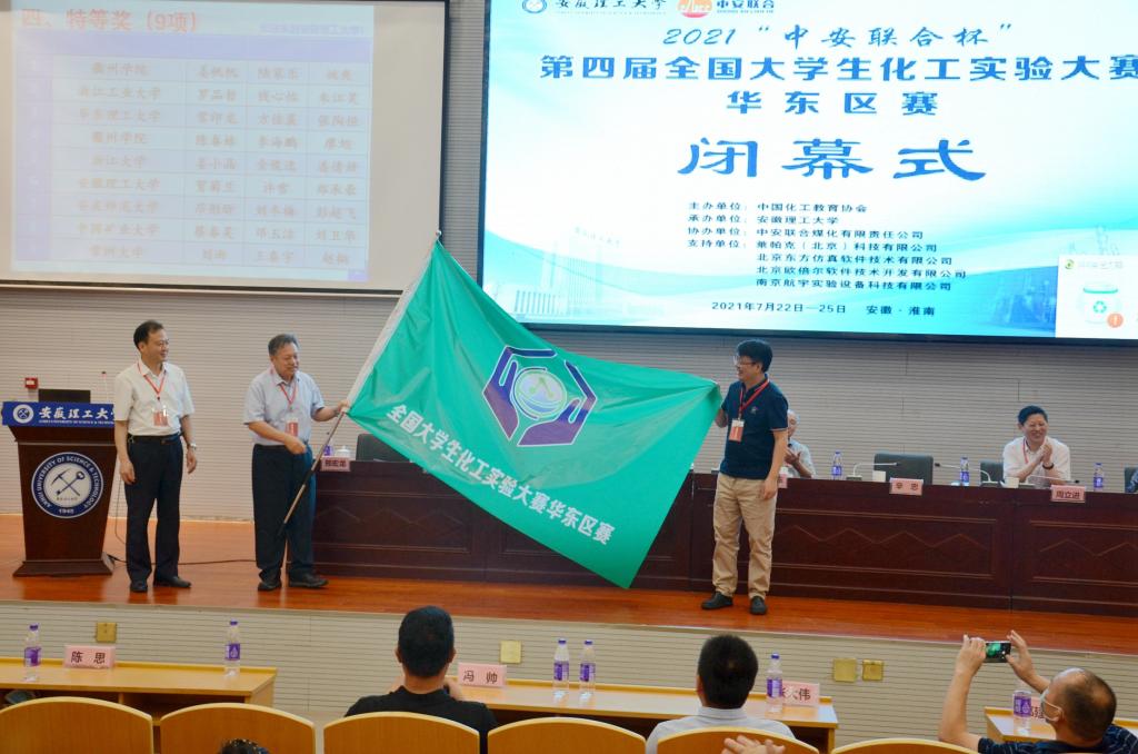 最后,辛忠教授主持赛旗移交仪式,确定浙江工业大学为下一届华东区赛承办单位,本届赛事圆满落幕。
