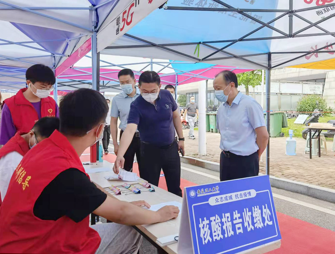 为确保学校开学各项工作安全有序进行,9月1日上午,新学期开学学生返校第一天,校党委书记郭永存,党委副书记、校长袁亮院士,党委副书记、常务副校长虞宝桃,党委常委、副校长宫能平深入现场对学校新学期开学学生返校、疫情防控工作等进行了全面检查。