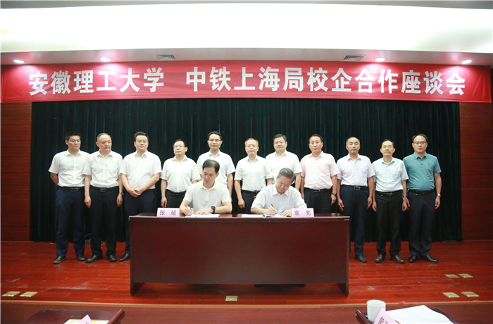 9月9日下午,安徽理工大学、中铁上海工程局集团有限公司校企合作座谈会在淮南市政务中心C座一楼会议室举行,双方签订战略合作框架协议,并就科学研究、平台建设、人才培养、毕业生招聘、博士后科研工作站建设等方面的交流合作进行了深入交流。
