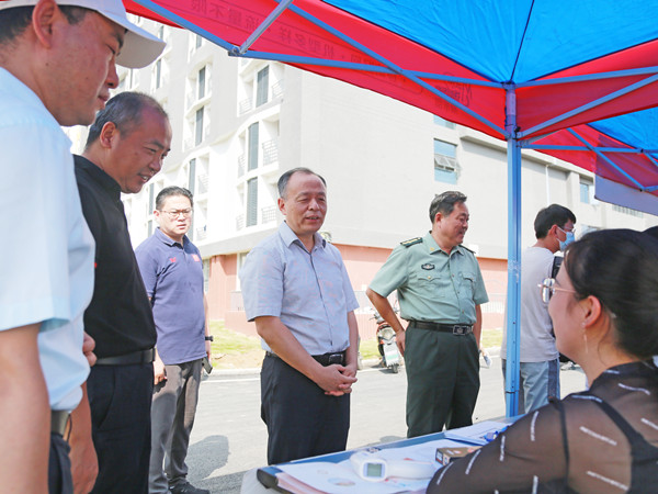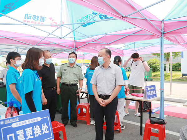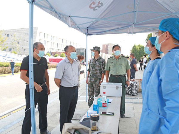 在百川门迎新点,郭永存查看了学生核酸检测报告查验、安康码查验、体温检测、行李物品消杀等环节防控措施落实情况,叮嘱大家要克服麻痹思想,周密周全做好迎新工作,严格校园防控措施,确保校园安全和师生健康。在发热处置校外值班点,郭永存对值班医生冒着高温保障研究生新生入学报到和疫情防控表示感谢与慰问。