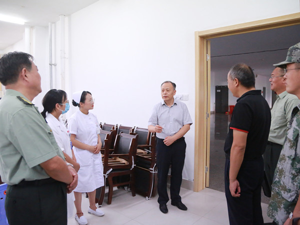在医疗保障值班室,郭永存仔细查看了急救物品、器械等医疗物资,与值班医生深入交流,询问了军训期间就医同学的主要病情类别和症状,要求值班医生严格执行疫情防控要求和学校关于发热学生处置的有关规定。
