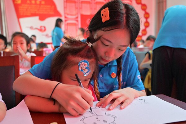 今年暑期,在“圆梦工程”助力乡村学校少年宫“七彩假期”专项志愿服务活动中,学校300多名志愿者走近乡村留守儿童,以美培元,将美育熏陶融入支教全过程,滋润少年儿童纯洁心灵。