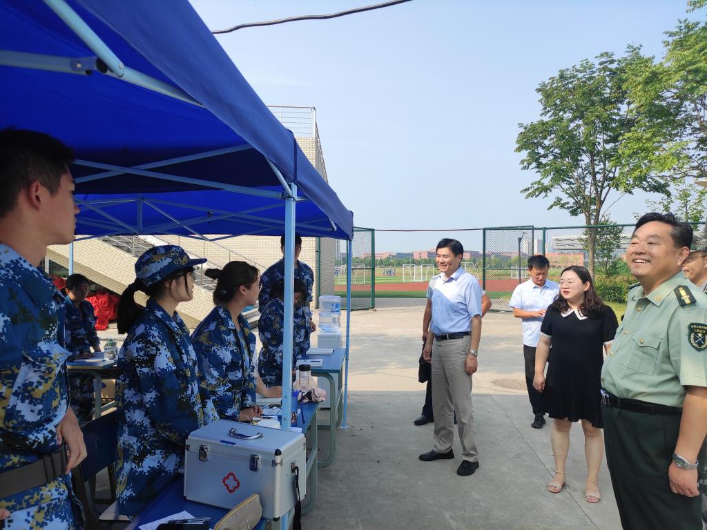 虞宝桃逐一走访军训现场总值班点和各学院值班点,了解医疗保障、值班值守等情况,对大家的辛勤付出表示感谢。在学院值班点,他与辅导员助理谈心谈话,对他们的工作给予关心和指导。