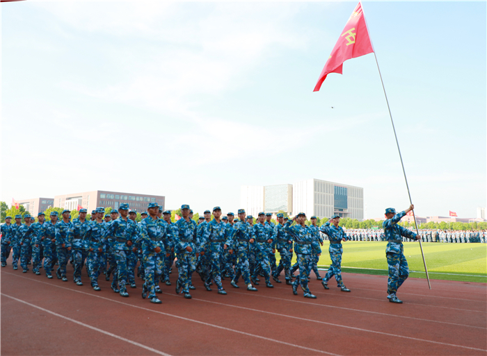 2021级学生军训汇报表演暨总结表彰大会在嘹亮激昂的《中国人民解放军军歌》声中圆满结束。