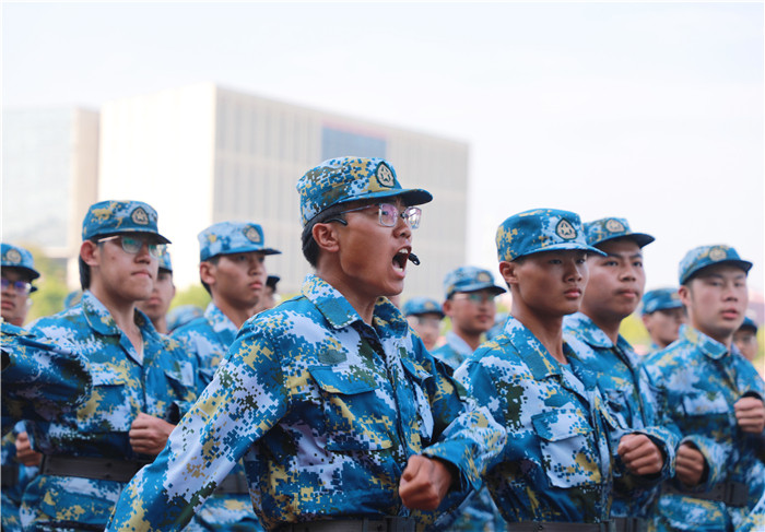 虞宝桃和同学们分享了他对学校“团结 奋进 博学 奉献”校训的理解。他指出,学校校训是为人为学、做人做事、追求真理与服务社会的完美统一,反映了学校的办学理念和治校精神,既具有鲜明的时代特色,又具有深厚的文化内涵。团结就是力量,团结深刻体现着中华民族“和”的精神,习近平总书记提出构建人类命运共同体,是人类大同的团结思想,无论是旧中国反抗外来侵略还是孟晚舟得以返回祖国,都是中华民族团结一致抗争取得,我们要有团队的精神,我们的班级要团结,我们的学院要团结,我们的学校发展更要我们团结;奋进就是要奋勇前进,《周易》有云:天行健,君子以自强不息。自强不息就是奋进的表现。我们的同学们在军训当中严格按照安排认真组织训练,各连队更是形成了“比、学、赶、帮、超”浓厚氛围,创先争优,相互促进,刻苦训练,顽强拼搏,这就是一种奋进的表现。希望同学们在大学生活当中一直会勇往直前,奋发图强。博学就是《礼记·中庸》中的“博学之,审问之,慎思之,明辨之,笃行之”。 大学的根本任务是立德树人,同学们既要树立自己优良的德行还要立志拥有广博而精深的学问。要树立远大理想抱负,用扎实的学识,为党和国家,为学校的事业发展添砖加瓦;贡献是社会责任感,强调要把我们个人的奋斗与社会的发展紧密相连,这样才是有价值的人,有益于祖国和人民的人。我们当代大学生,应当摒弃佛系和“躺平”的观念,真诚的学习和付出,为国家服务,为人民服务,为社会服务,这才是我们应有的价值理念。希望同学们能够长期坚持军训时期坚韧不拔的意志、吃苦耐劳的品质、团结协作的精神和严格的组织纪律观念,以平常心去迎接各种挑战和困难,奋力书写属于自己的青春篇章。