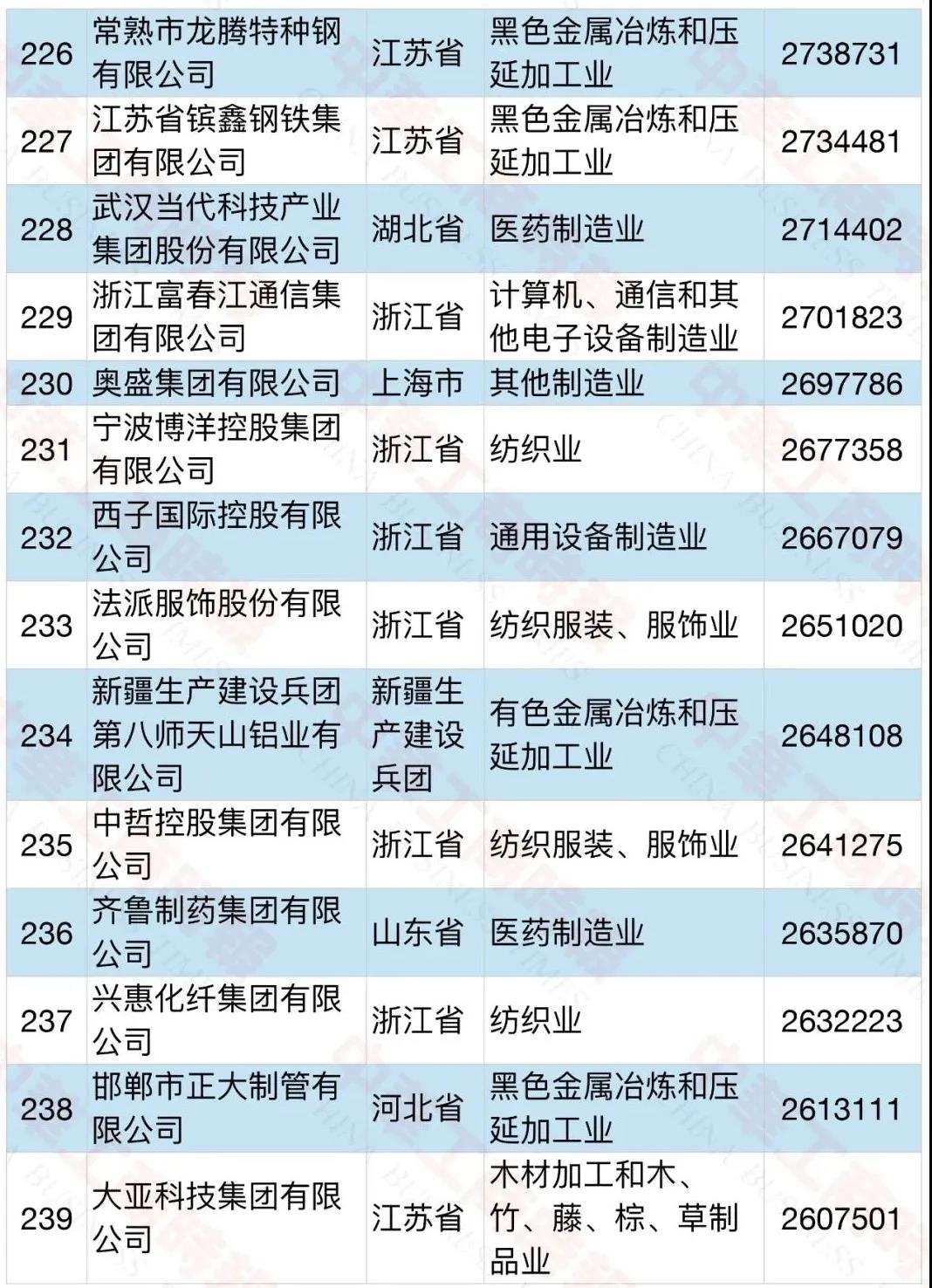 附:2021年中国民营企业、制造业企业500强部分榜单