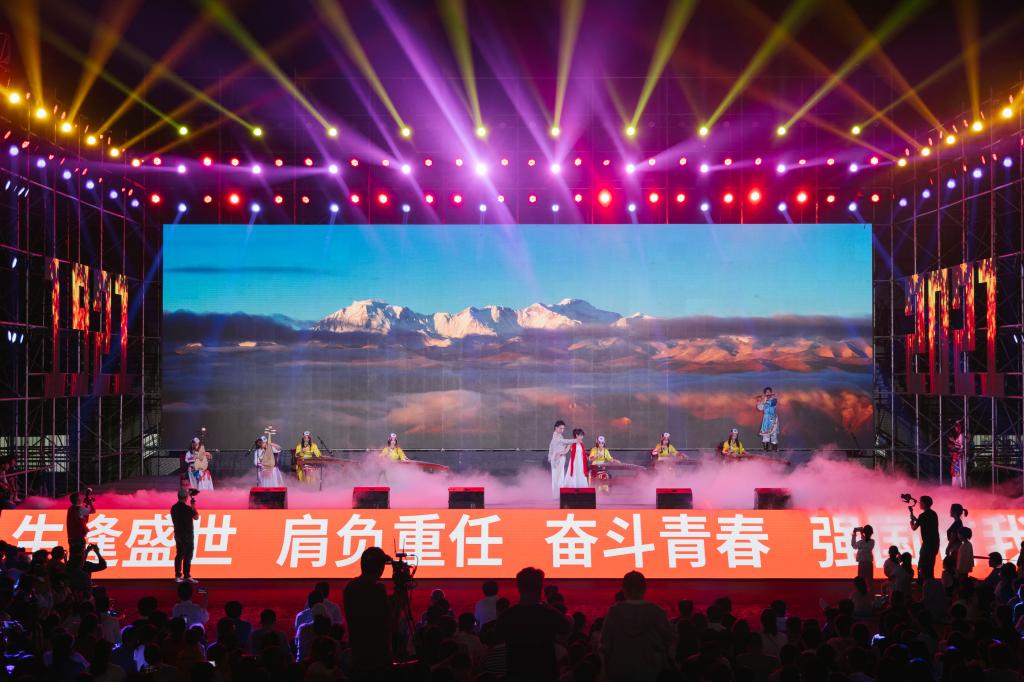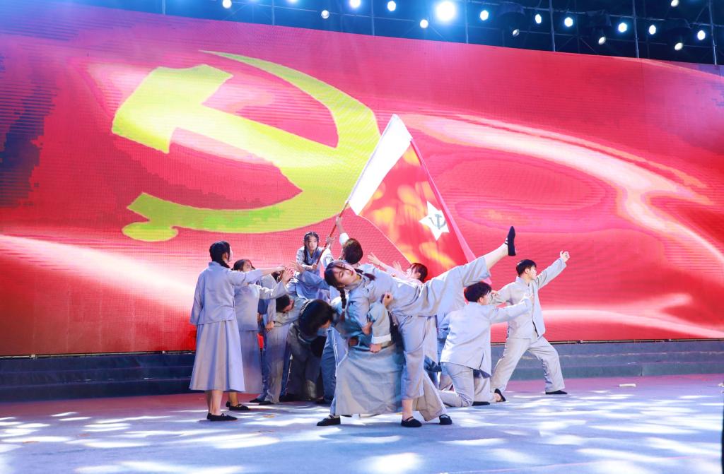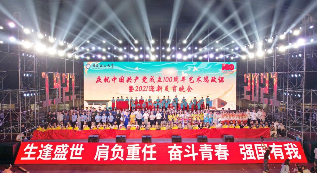 “没有共产党哪有新中国”“跟着共产党才有新中国”,集体合唱曲目《在灿烂阳光下》拉开了文艺展演的序幕。由校百川话剧社呈现的原创情景剧《觉醒》将革命先驱在中国大地播撒马克思主义火种的故事搬上舞台,展现出民族危难之际,中国共产党人救亡图存、探寻真理的革命精神;数学与大数据学院、材料科学与工程学院同学们联排的革命舞蹈《我宣誓》,让观众们感受到革命烈士不惧流血牺牲,誓死捍卫理想、坚守信念的大无畏精神;《社会主义好》《我们的生活充满阳光》等歌曲联唱,唱响了安理学子热爱祖国的旋律;情景剧《春潮涌动》还原了改革开放初期立誓为盟的“大包干”场景;武术、国标舞、啦啦操、街舞,由社团同学们带来的《追梦赤子心》将晚会推向高潮,展现了在奥运精神的激励下,安理青年传承体育文化、弘扬体育精神的追梦之旅;灵动的肢体动作,抽象的艺术表达,医学院同学们用他们的舞蹈《写进历史的春天》致敬疫情下最美的逆行者;无挑战不青春,“挑战杯”主题曲《挑战追梦》展现了我校近年来在科技创新方面取得的佳绩,为新同学们开启了最炫酷的挑战人生;拳拳赤子心,殷殷桑梓情,校团委郑江老师演唱的原创歌曲《一念初心》,讴歌了我校教育报国、传播真理的育人精神,这是对安理76载最厚重的回答,也是对建党百年最诚挚的献礼。大美之艺,师生们在美育启迪下沐浴芳华,他们用眼中的光芒点亮夜空,用心中的理想点亮未来。