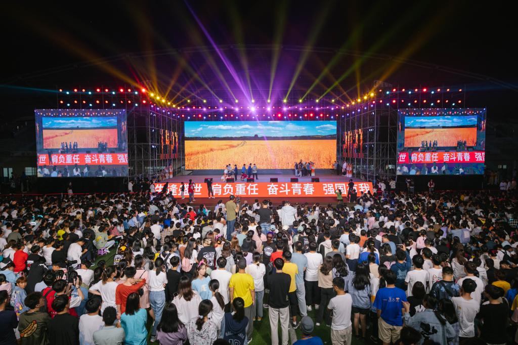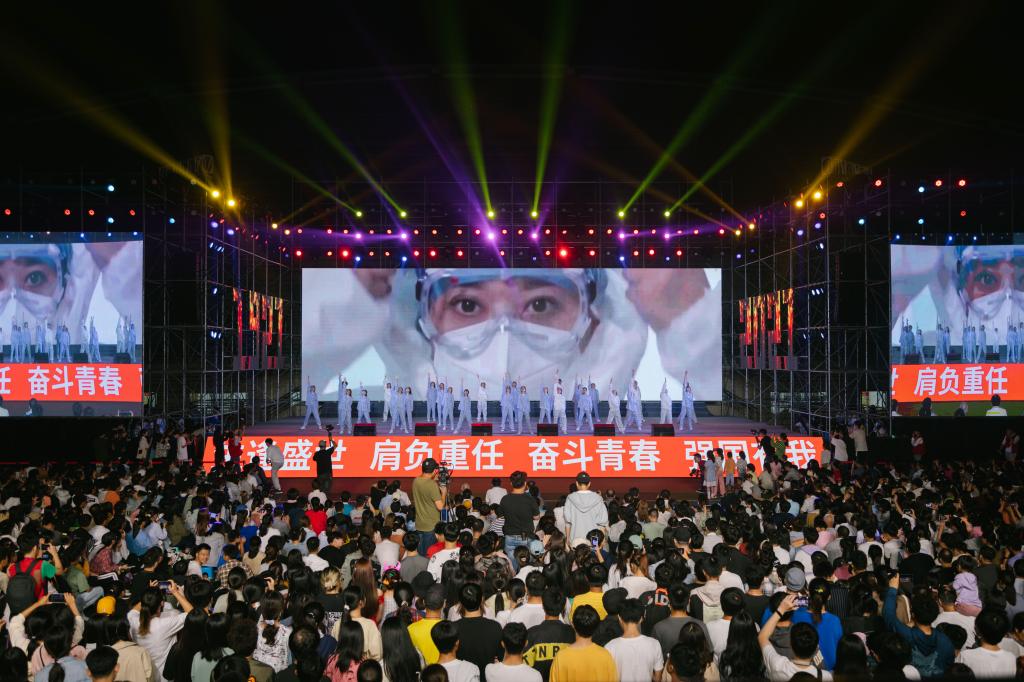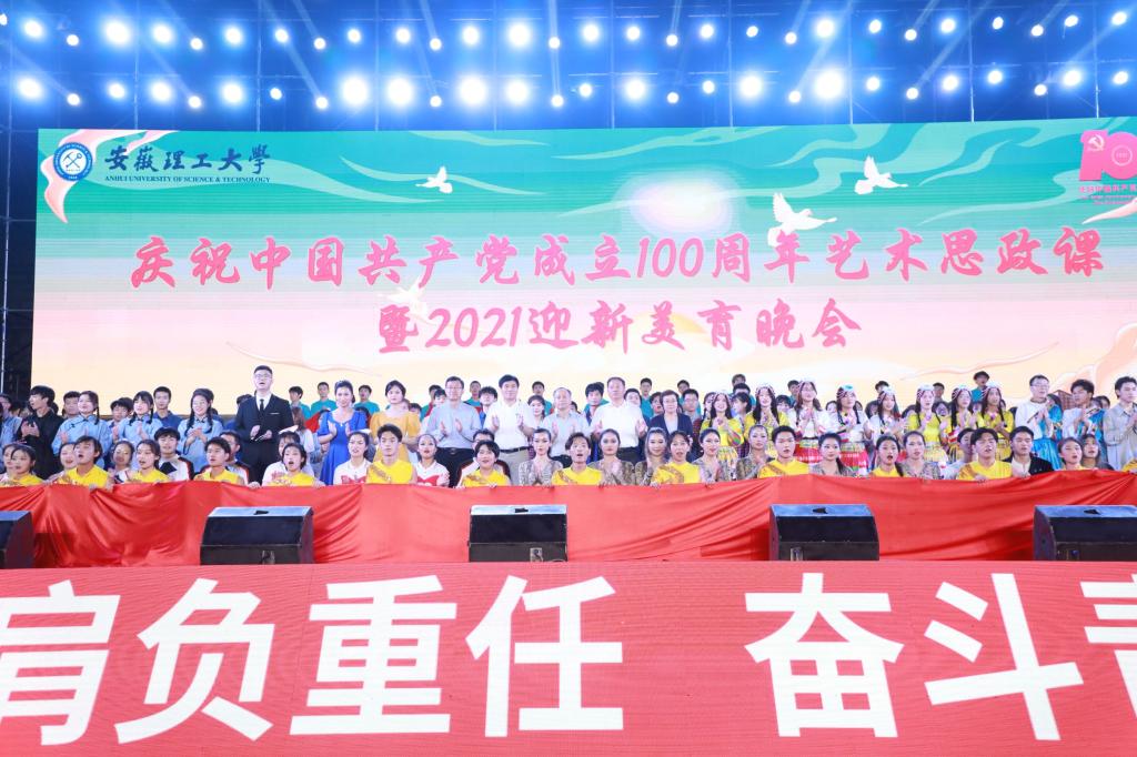 胸怀千秋伟业,恰是百年风华。9月29日晚,我校庆祝建党100周年艺术思政课暨2021迎新美育晚会在至诚体育场隆重举行。校党委书记郭永存,党委副书记、常务副校长虞宝桃,副校长孟祥瑞,党委常委、副校长郑明东、宫能平、梁立昌,党委常委、纪委书记、监察专员周旭出席晚会。各学院(部)领导班子成员,机关职能部门、直属单位主要负责人,2021级学生辅导员,2021级本科生、研究生、博士生万余名师生汇集现场,为党的百年华诞献上诚挚祝福和伟大礼赞。2万多名校友和社会各界人士通过网络直播同步观看了晚会盛况。