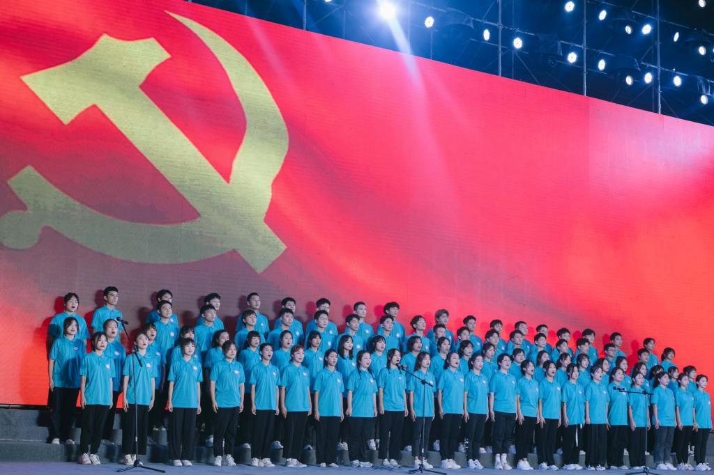 晚会由党史讲述和文艺展演两部分穿插衔接而成,分“开天辟地”“改天换地”“翻天覆地”和“惊天动地”四个篇章,再现了百年来中国共产党团结带领中国人民不懈奋斗的辉煌历程和新时代中国青年“奋斗青春、强国有我”的奋进品格。