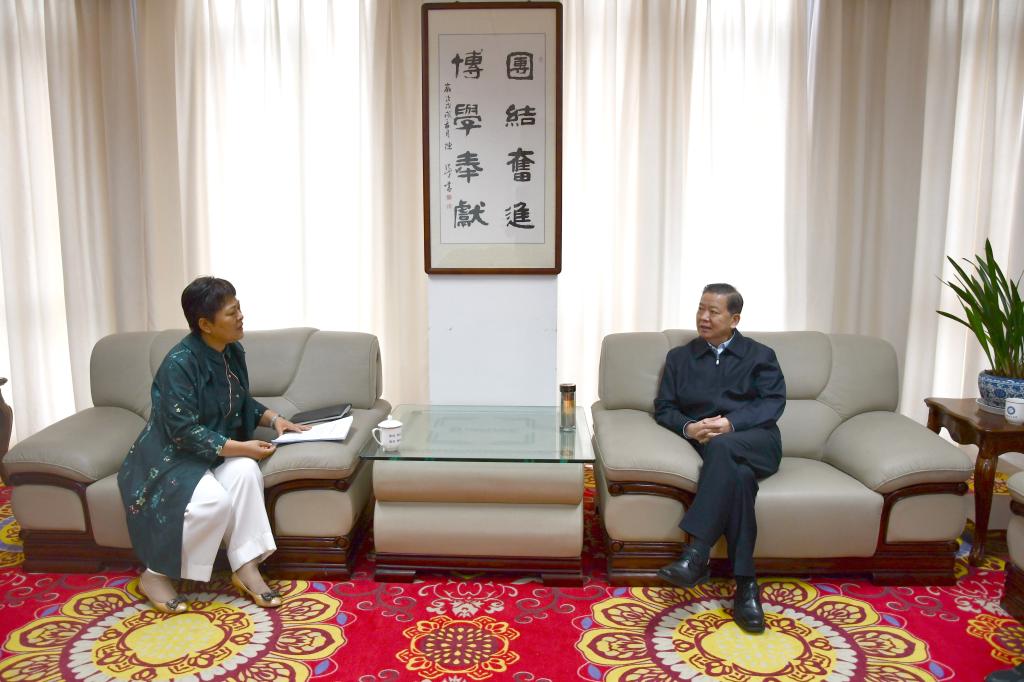 其间,校党委副书记、校长袁亮院士亲切会见了李静处长。在听取李静关于全省“双碳”科技行动方案介绍后,袁亮院士充分肯定了省厅围绕“双碳”目标所开展的各项工作及举措。他指出,安徽省是长三角区域的能源大省,其“双碳”建设目标任务艰巨,做好碳达峰、碳中和技术路径设计是重中之重。煤炭、电力、钢铁、水泥等行业是减排降碳之重点,需要发挥好在皖高校、科研院所的协同科研作用,特别是要抓实煤炭生产端、消费端、固碳端及碳汇管理等全过程、全产业链的技术创新,制定行之有效的行动方案,才能在“双碳”大考中赢得先机和胜利。