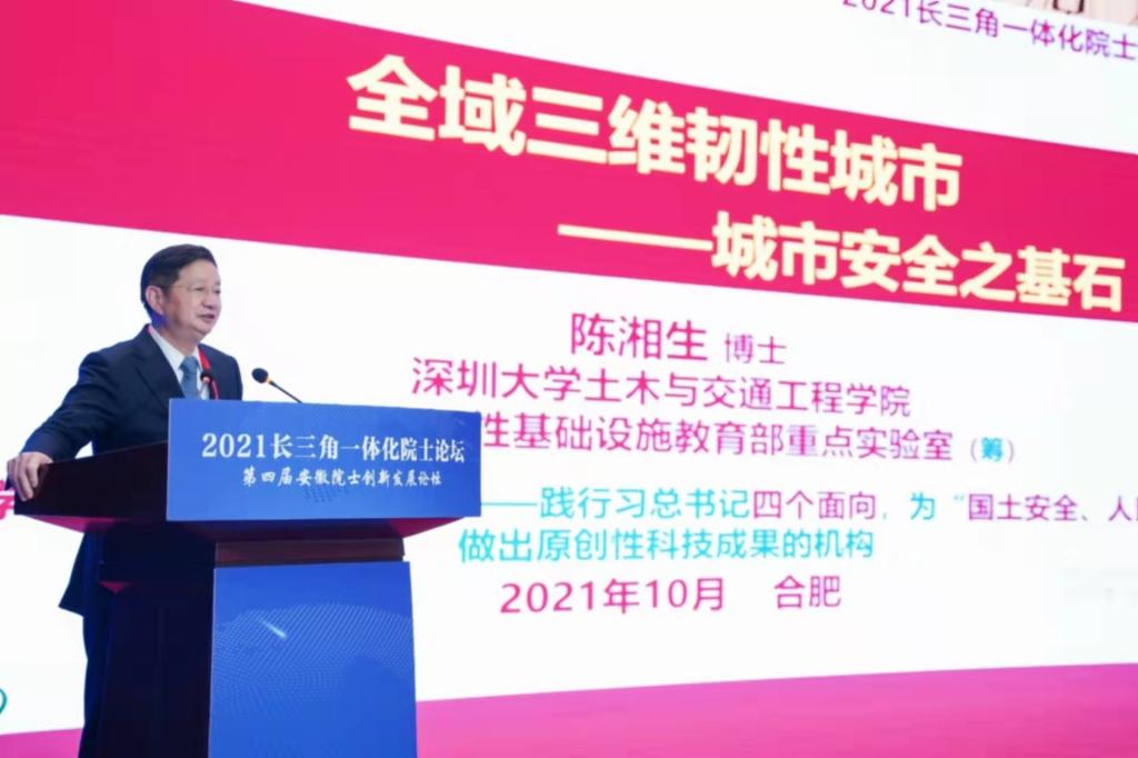 校党委副书记、校长袁亮院士应邀出席研讨会,主持大会新一代信息技术主题报告会,并作题为“‘双碳’愿景下长三角一体化发展战略思考”的大会报告。我校杰出校友、特聘教授陈湘生院士作题为“全域三维韧性城市——城市安全之基石”的大会报告。我校校友、安徽省政协原副主席王鹤龄,中国工程院院士、我校特聘教授王运敏以及黄维、谭建荣、施蕴渝、谢毅、都有为等近30位院士出席会议。